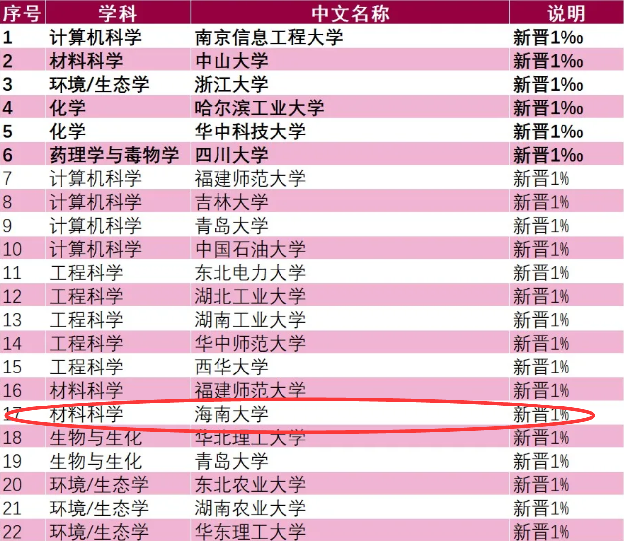材料科学与工程学院高度重视学科建设的顶层设计,不断完善体制机制建设,材料科学学科确定了以“天然橡胶材料、热带岛屿工程材料、海洋能源工程材料和生态环境材料”四个方向的学科建设主线,以专业认证为抓手,新工科人才培养为手段,“本硕博培养一体化”为支撑,对接海南十二大主导产业,面向全国,辐射东南亚,努力建设成为我国热带、海洋高水平材料类专业人才培养和高水平材料科学研究的重要基地之一,为国家南海战略服务和南海相关的海洋材料工程科学提供技术支持。本次材料科学学科进入ESI全球前1%,充分说明学院的核心竞争力和社会影响力不断提升。今后,学院将继续发挥产学研融合发展的特色优势,加快创新团队的建设,努力实施学科融合发展,不断推进“一流学科”建设步伐,提升学院教育教学水平,为服务地方经济社会发展发挥更大支撑,作出更大贡献。