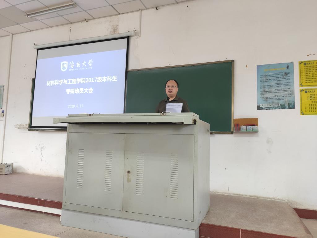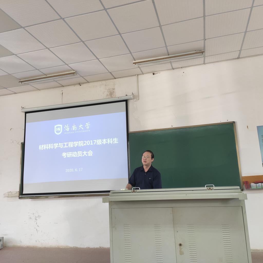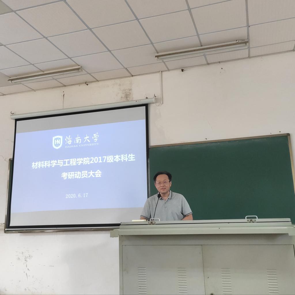 为进一步调动2017级学生考研积极性,明确考研目标,了解相关考研流程、复习和备考技巧。2020年6月17日,材料科学与工程学院在2教207教室举办2017级考研动员大会。学院分管研究生教学的副院长林仕伟、分管本科生教学的副院长李长久、分管学生工作的副处级辅导员周郭军,材料系系主任文峰、高分子系系主任杜杰、2017级辅导员郎筱宇以及全体2017级本科生参加会议。