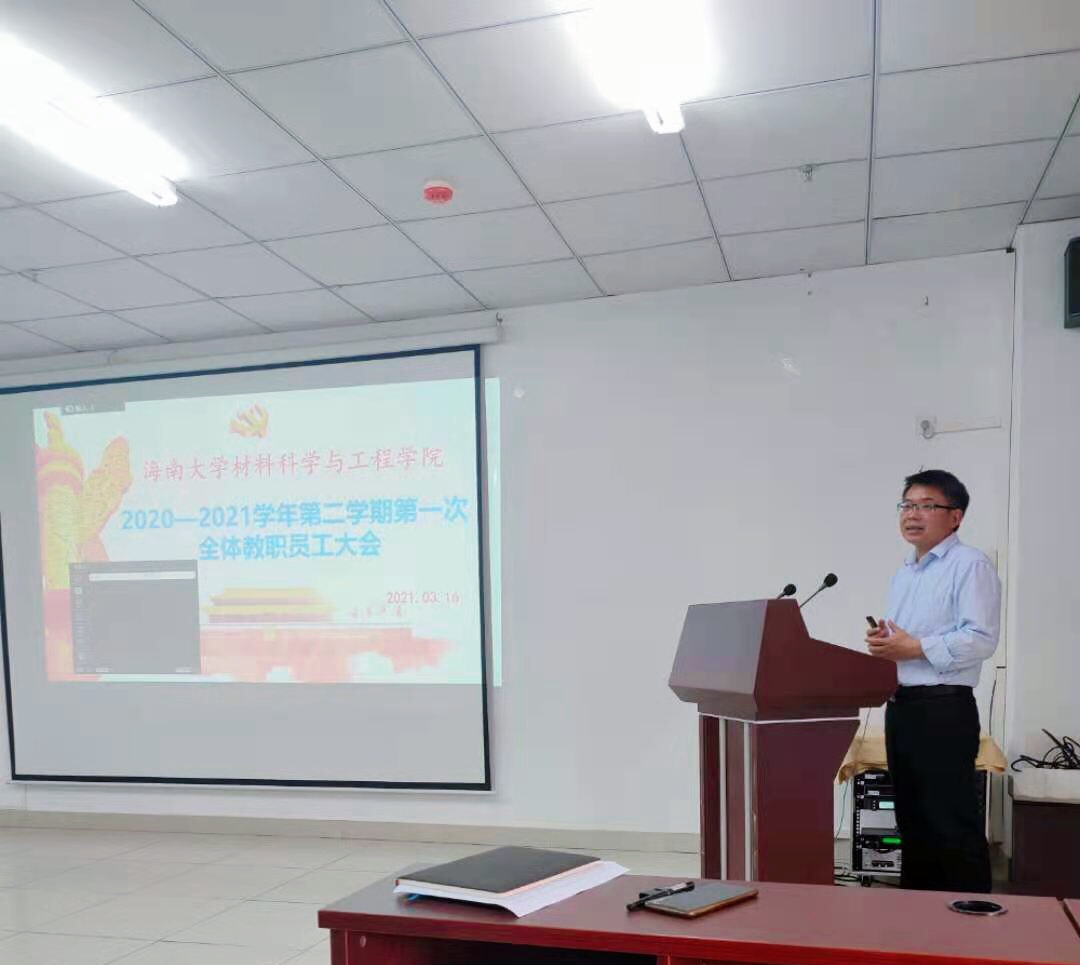 2021年3月16日下午,材料科学与工程学院在研发楼710召开新学期全体职工大会,会议由胡先文书记主持,全体职工参加会议。