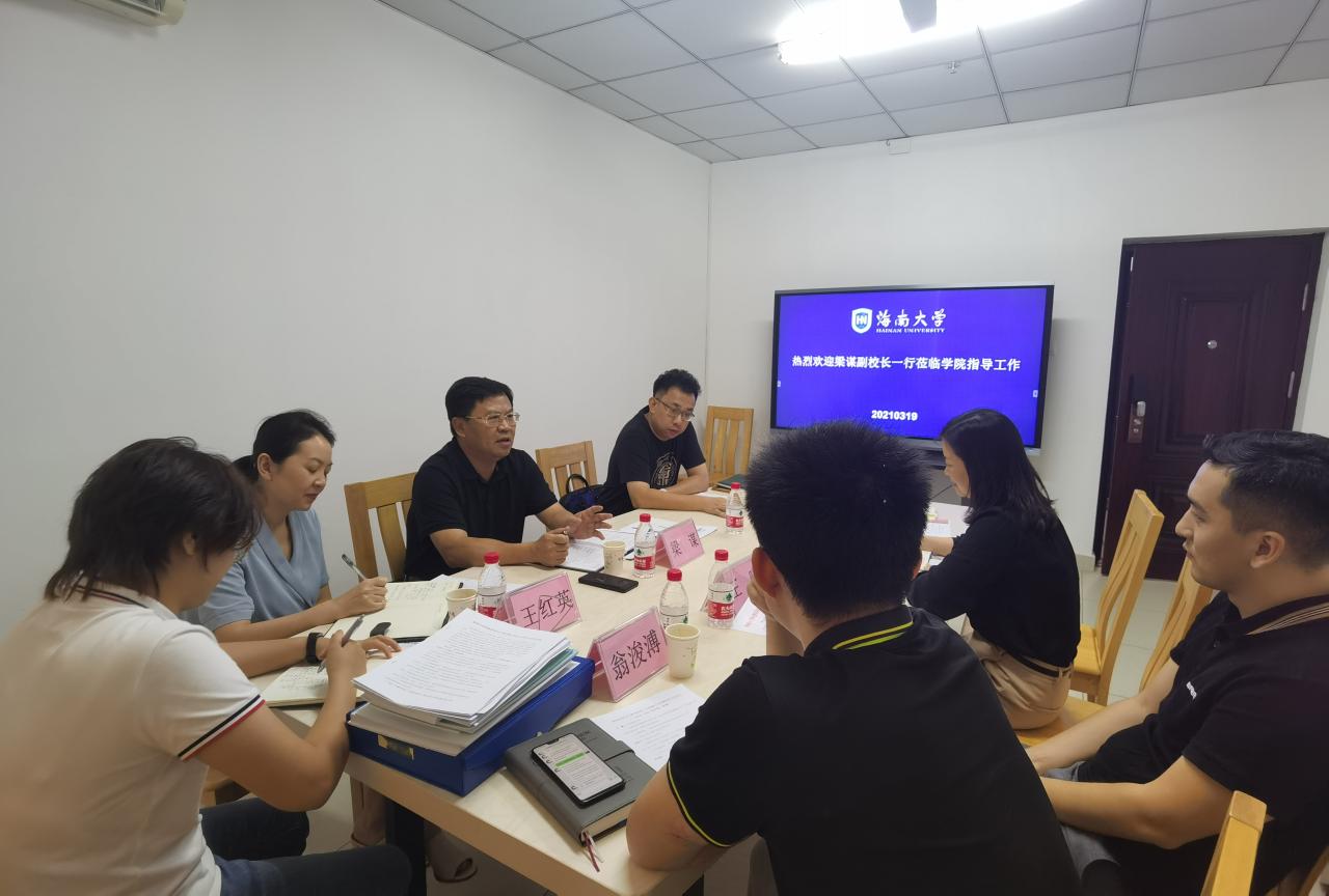 近日,梁谋副校长一行到女帝 慰问一线辅导员,学院党委书记胡先文陪同并介绍整体情况。随后召开学生工作座谈会,党委副书记周郭军及全体辅导员参加。