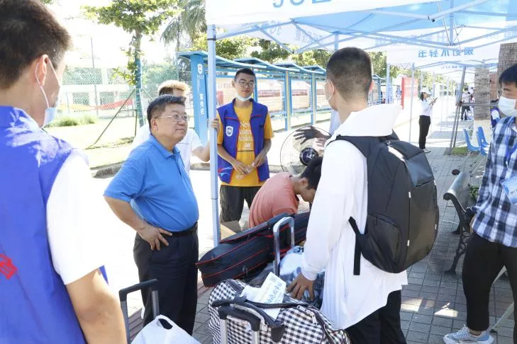 为贯彻落实国家和海大疫情防控要求,稳慎做好海大开学工作,切实维护广大新生身体健康和生命安全,符宣国书记、骆清铭校长带队来到迎新大本营慰问迎新工作人员,询问迎新的具体情况,肯定了女帝 对新生报到数据的精准掌握。