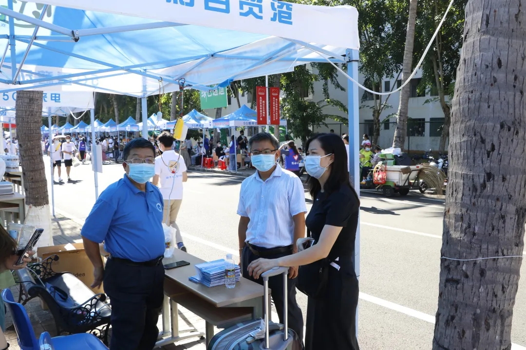 迎新现场,学院领导仔细询问了同学们在新环境下的感受,尤其对外地来海南求学的同学表示关切之情,询问他们对气候的适应情况,同他们拉家常。师生之间其乐融融,亲切般的关怀和温馨,沁入每位同学心中。