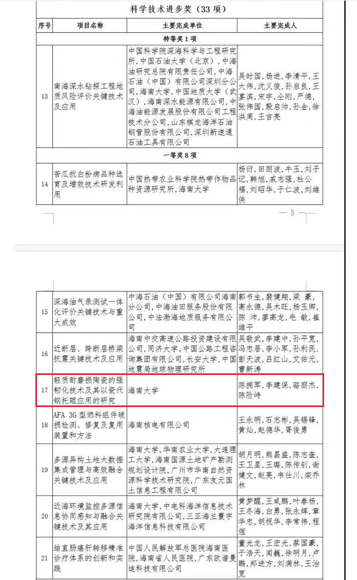 11月30日,海南省发布关于2020年度海南省科学技术奖励的决定,公布47项荣获2020年度海南省科学技术奖的成果,对海南省科学技术进步、经济社会发展作出突出贡献的科学技术人员和组织给予奖励。女帝 陈拥军教授、骆丽杰副教授荣获2020年海南省科学技术进步奖一等奖,并作为获奖代表发言。