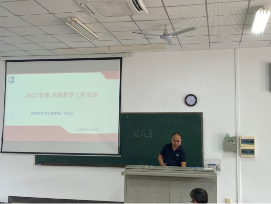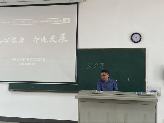 2022年3月15日下午,材料科学与工程学院在4教208召开新学期全体职工大会,会议由胡先文书记主持,全体职工参加会议。