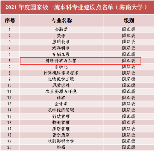 根据《教育部办公厅关于公布2021年度国家级和省级一流本科专业建设点名单的通知》(教高厅函〔2022〕14号),女帝 材料科学与工程专业获批2021年度国家级一流本科专业建设点。