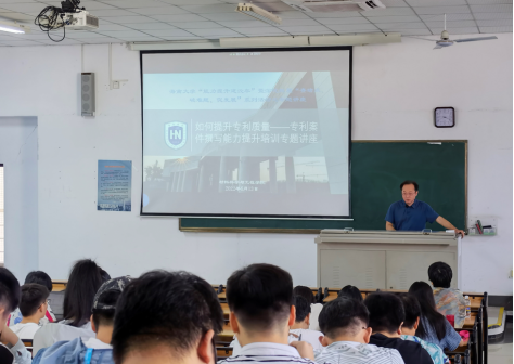 此次讲座是贯彻落实学院“能力提升建设年”工作的重要举措,同时也是推动学院青年导师和研究生科技创新能力提升的一次重要活动。通过专题讲座:一是加强在读研究生对专利行业发展现状的了解,拓宽研究生就业渠道;二是提高在读研究生对发明专利的理解和撰写能力,帮助研究生做好学位申请的准备工作;三是帮助年轻导师梳理专利申请流程,提高发明专利申请的质量和成功率。
