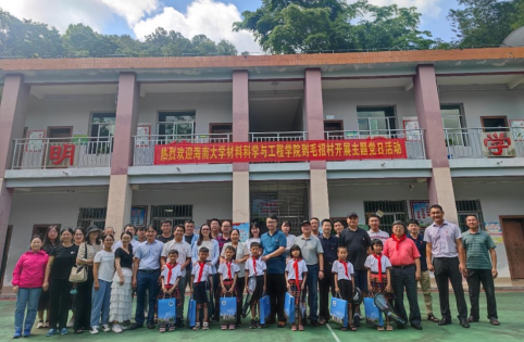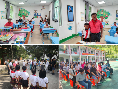 在廖建和院长的带领下前往毛招村委会村教学中心,七位毛招村小学一年级的小朋友身穿黎族服装高唱黎族欢迎歌曲对大家的到来表示热烈欢迎,并为廖建和院长等人一一戴上红领巾。随后,在学校操场上,毛招村的孙建业书记详细讲解了乡村振兴的总体要求和主要内容,并结合毛招村的党建基本情况对毛招村的乡村振兴建设作出了长远规划和展望。接着,进行了捐赠仪式,给毛招村的小朋友们捐赠了课本、笔记本等教学工具和文娱用品,鼓励小朋友们好好学习。最后,参加活动的党员重温入党誓词,并与小朋友们合影留念。