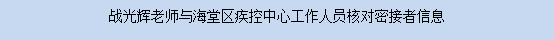 在抵达志愿服务执行地点的第二天,根据属地疫情防控形势和分工,战光辉老师听令调往海棠区疾病预防控制中心参加“追阳先遣队”执行流调任务。在执行任务过程中,充分发挥自身优势,主动承担起了流调相关的表格绘制及信息汇总录入等工作,并认真与小组长和队员反复仔细核对“密接者与次密接者”的密接地点、住址、身份信息等,确保在第一时间完成小队组长派发的工作任务。期间完成了对4名感染者、40余名密接的信息跟踪,为海堂区疾控中心向三亚抗疫指挥部提供流调信息做出了贡献。