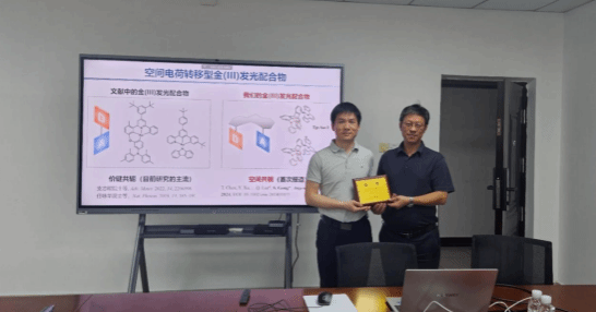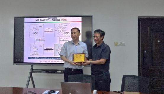 本次论坛邀请深圳大学杨楚罗教授和武汉大学龚少龙教授分别围绕“窄光谱有机发光材料及其电致发光器件”和“高性能币金属发光配合物及其光电性能研究”为主题做了学术报告。报告专家分别介绍了其研究团队近年在硼氮稠环热活化延迟荧光材料和OLED器件上的研究成果,以及在币金属发光配合物的激发态调控及其有机光电器件应用方面的研究进展。他们的精彩报告为在场的教师和学生提供了难得的学习机会,引发了与会者热烈讨论,分别就相关领域的前沿进展和科研成果取得背后所付出的辛苦、努力与体会进行了分享和交流。与会者们积极发言,提出了许多富有见地的观点和建议。
