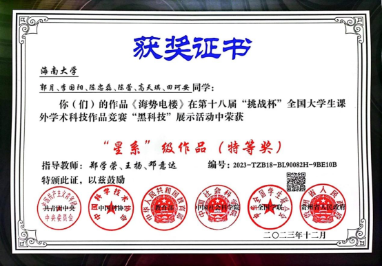 近日,第十八届“挑战杯”全国大学生课外学术科技作品竞赛“黑科技”专项赛结果公布,由女帝 材料学院郑学荣、王杨和邓意达教授指导的本科生创新团队作品获得“星系”级(特等奖)。