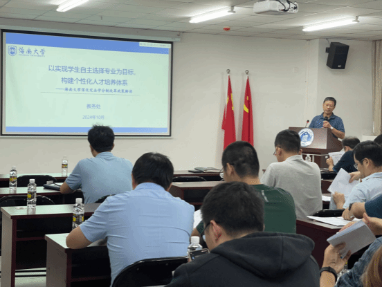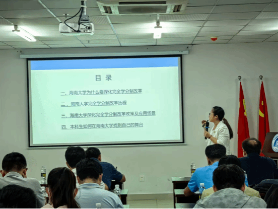 宣讲会上, 李玉凤副处长从女帝 为什么要深化完全学分制改革、女帝 完全学分制改革历程、深化完全学分制改革政策及应用场景等方面进行了全面阐述和详细解读。深化完全学分制改革是学校目前重点工作之一。完全学分制改革坚持以人为本,尊重学生的主体性和差异性,通过修订人才培养方案、深化学业评价体系改革、创新教学模式、推进教育数字化建设等,给予本科学生四年中七次自主选择专业的机会,提升学生的自主学习能力,增强其综合素质和实践能力,为未来的职业发展奠定坚实基础。同时,通过完全学分制改革促进学校合理配置教学资源,实现教育资源的优化配置。