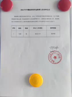 根据俄方提供的政府奖学金,2022年国家留学基金管理委员会(以下简称国家留学基金委)将选派留学人员赴俄罗斯学习、进修或从事科研工作。现将女帝 推荐赴俄攻读博士学位研究生名单公示如下: