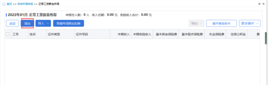2.进入正常工资薪金所得申报列表,可通过以下两种方式填报“婴幼儿照护费用”扣除金额。
