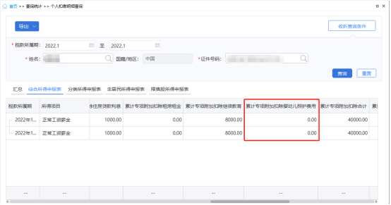 2.点击“个人扣缴明细查询”菜单,查看申报明细信息时,可查看该纳税人的“婴幼儿照护费用”扣除情况。