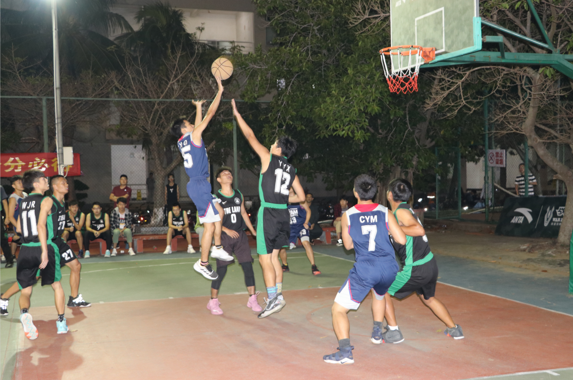 开场节目表演完毕,篮球赛事正式开始。双方球员各自使出看家本领,紧抓对方破绽,奋力进攻,短短十五分钟,比分几近持平。精准的三分,帅气的上篮,无论是观众还是球员都紧绷神经,不敢有一丝松懈。稍有恍惚,都可能成为对手的进攻时机。不相上下的比分,将比赛推向白热化。在比赛结束前10秒,17级本科生队凭借罚球领先1分,但在最后关头18级研究生队员吴荣根凭借三分绝杀,将胜利的天平逆转。