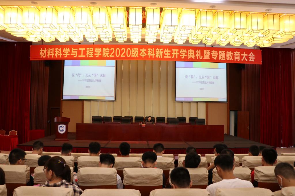 俗话说:“良好的开端是成功的一半”,为了帮助大一新生开创一个良好的开端,读懂国家、学校、学院发展历史,树立远大理想信念,材料科学与工程学院于2020年9月15日上午在社科楼报告厅举行了主题为“说我,先从国说起”的新生爱国主题教育讲座,主讲人为材料科学与工程学院副处级辅导员周郭军。