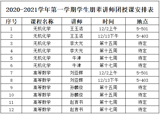 后续学生学习与发展中心仍将继续开展各类朋辈授课及互助活动。本学期授课计划如下表。
