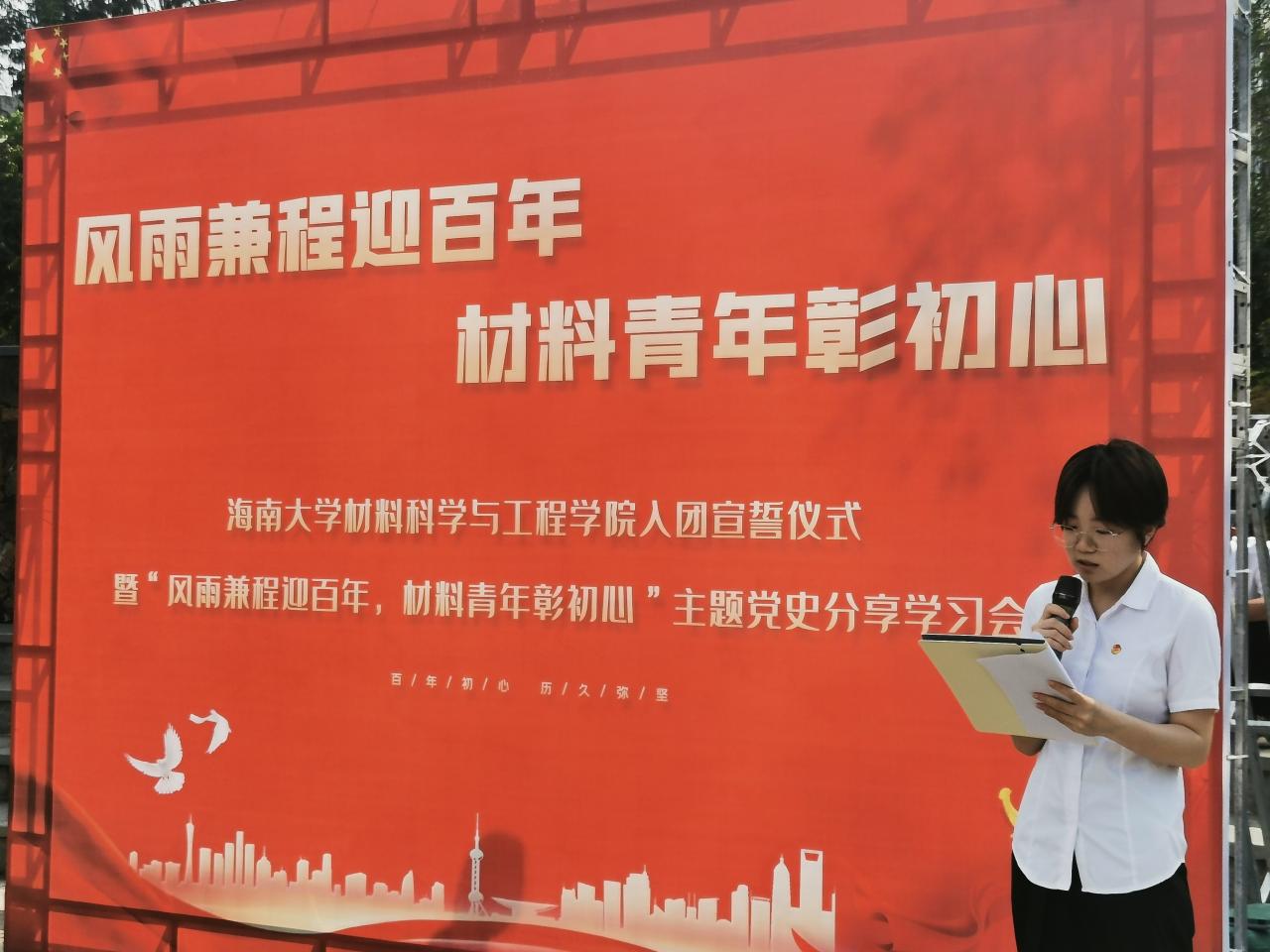 5月4日下午,材料学院在青春记忆广场举行材料科学与工程学院2021年度新团员入团仪式暨“风雨兼程迎百年,材料青年彰初心”主题党史分享学习会,团学负责人杨馥娴,党员代表、团学骨干代表、全体新团员参加。