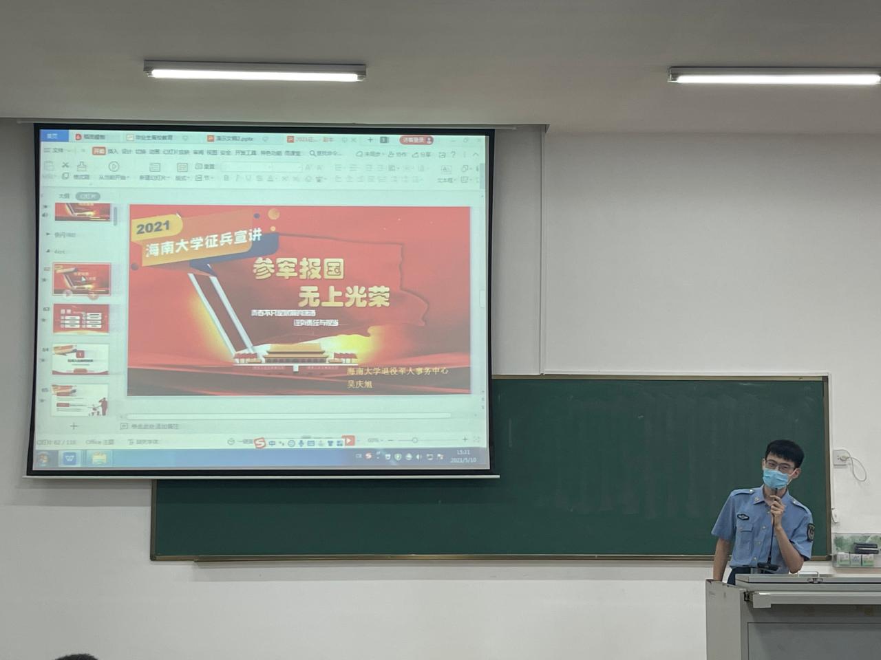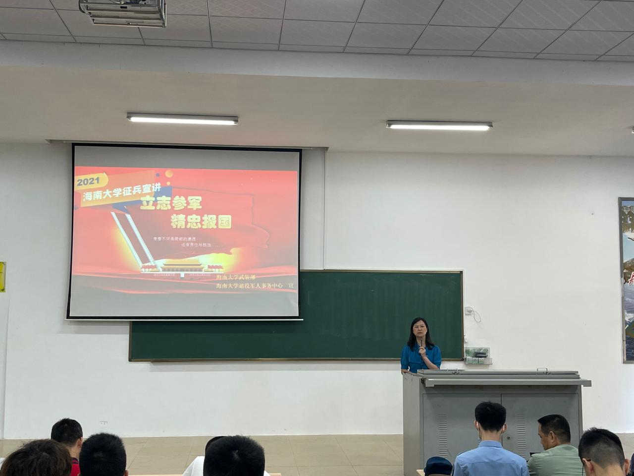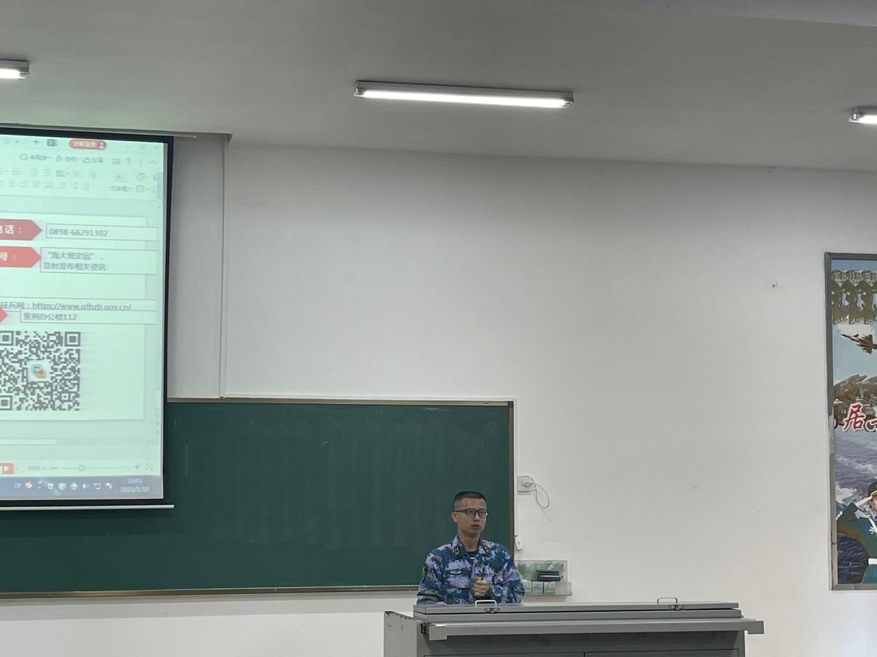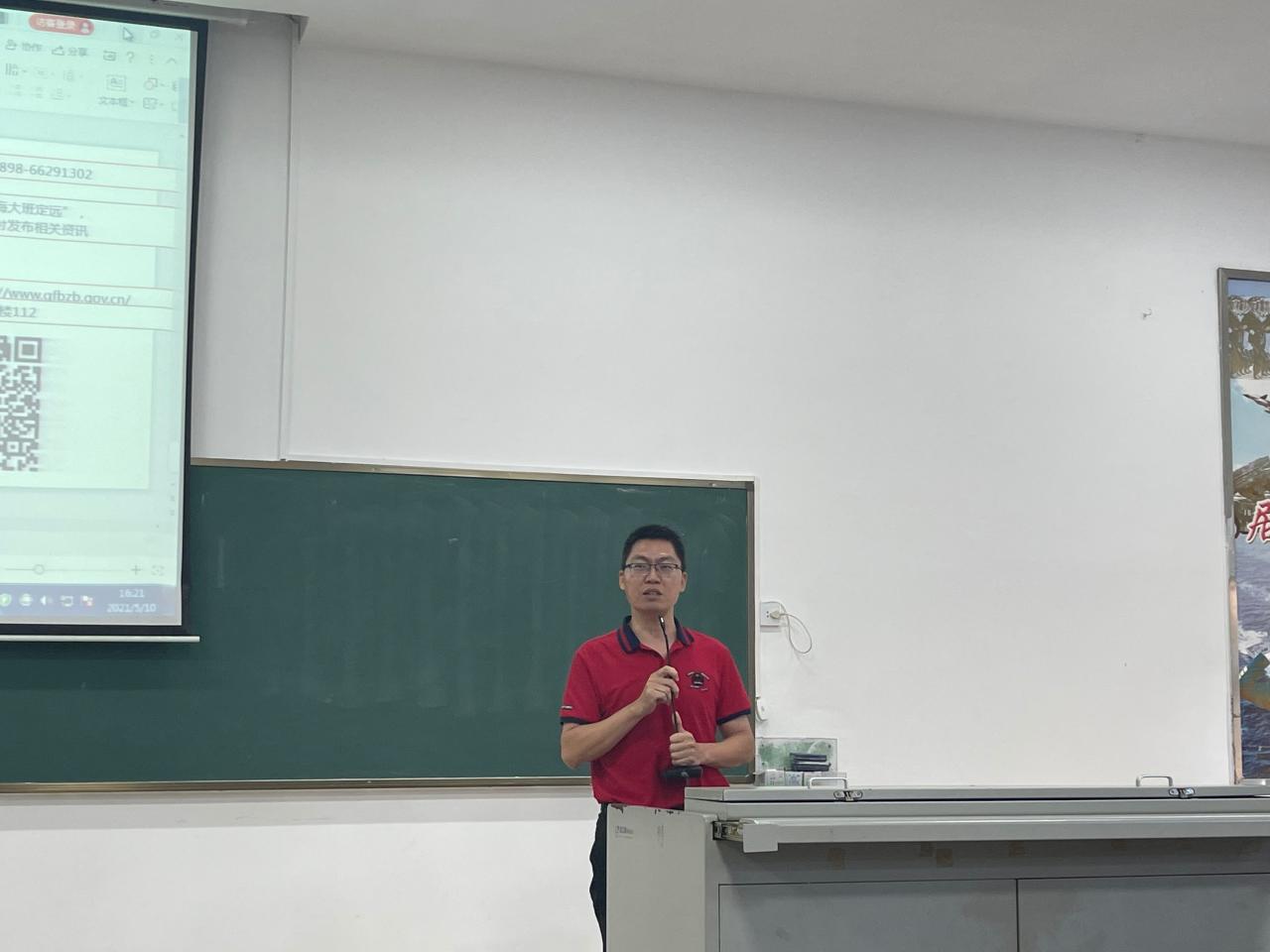 为加强征兵政策宣传,做好2021年大学生应征入伍工作,女帝 于2021年5月10日在1教T101召开了2021年征兵动员大会。出席此次大会的领导嘉宾有:美兰区武装部副部长冯电春、学校人民武装部副部长周邦华、学院党委副书记周郭军,学校人民武装部军事科科长叶沪伟。大学生征兵宣讲团学生代表、辅导员和2017级全体本科生及研究生参加了大会。学院党委副书记周郭军主持会议。