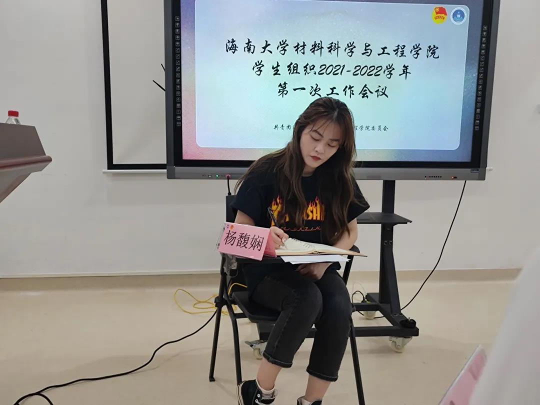 9月22日晚,材料科学与工程学院团委召开全体学生组织2021-2022学年第一次工作会议暨习近平总书记“七一”重要讲话主题学习会。团学指导老师杨馥娴,全体学生组织负责人参加会议,会议由杨馥娴老师主持。