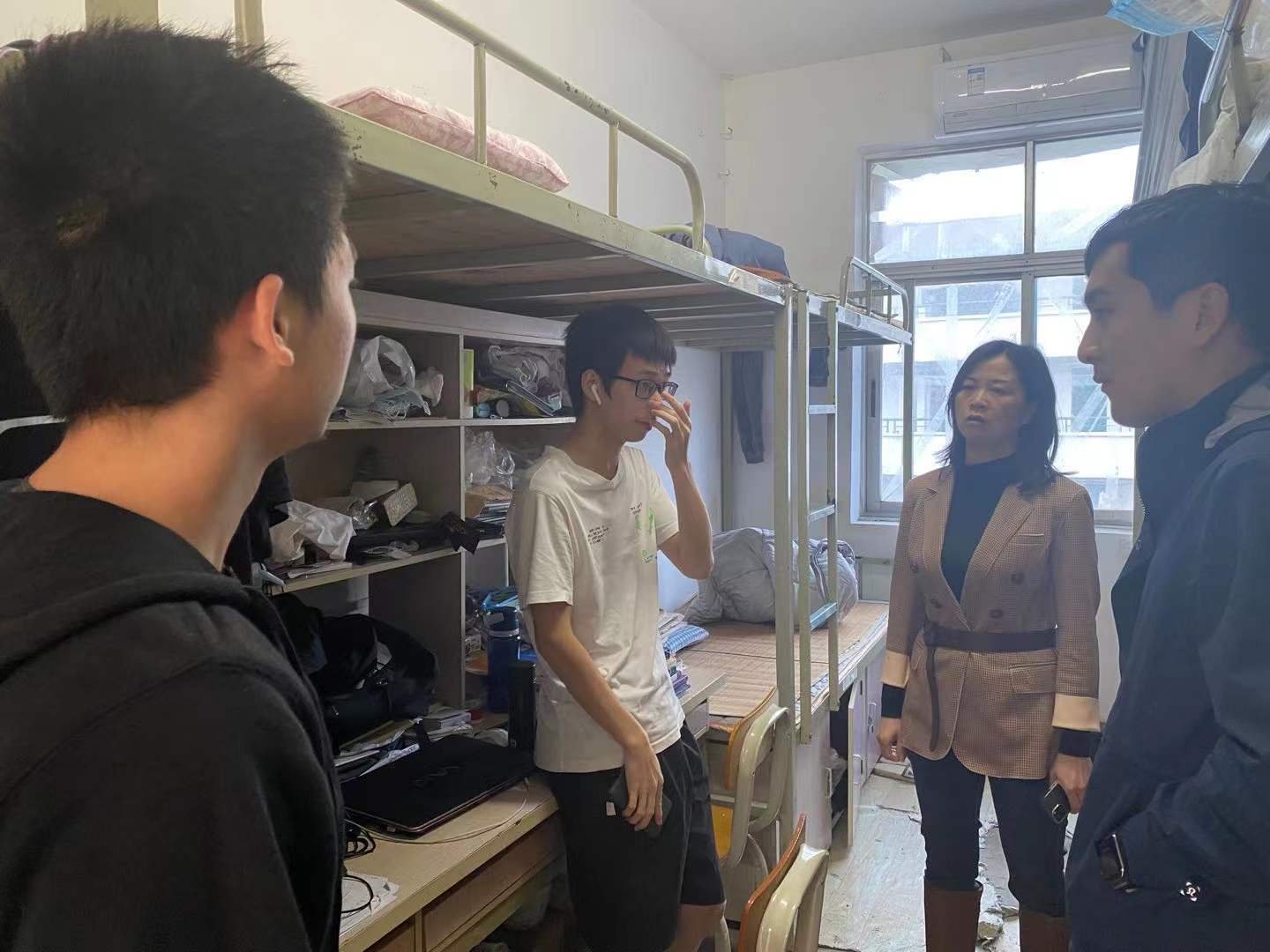 会议结束后,党委副书记周郭军、全体辅导员分别走访留校学生宿舍,再次叮嘱学生要互相照顾,注意假期安全。