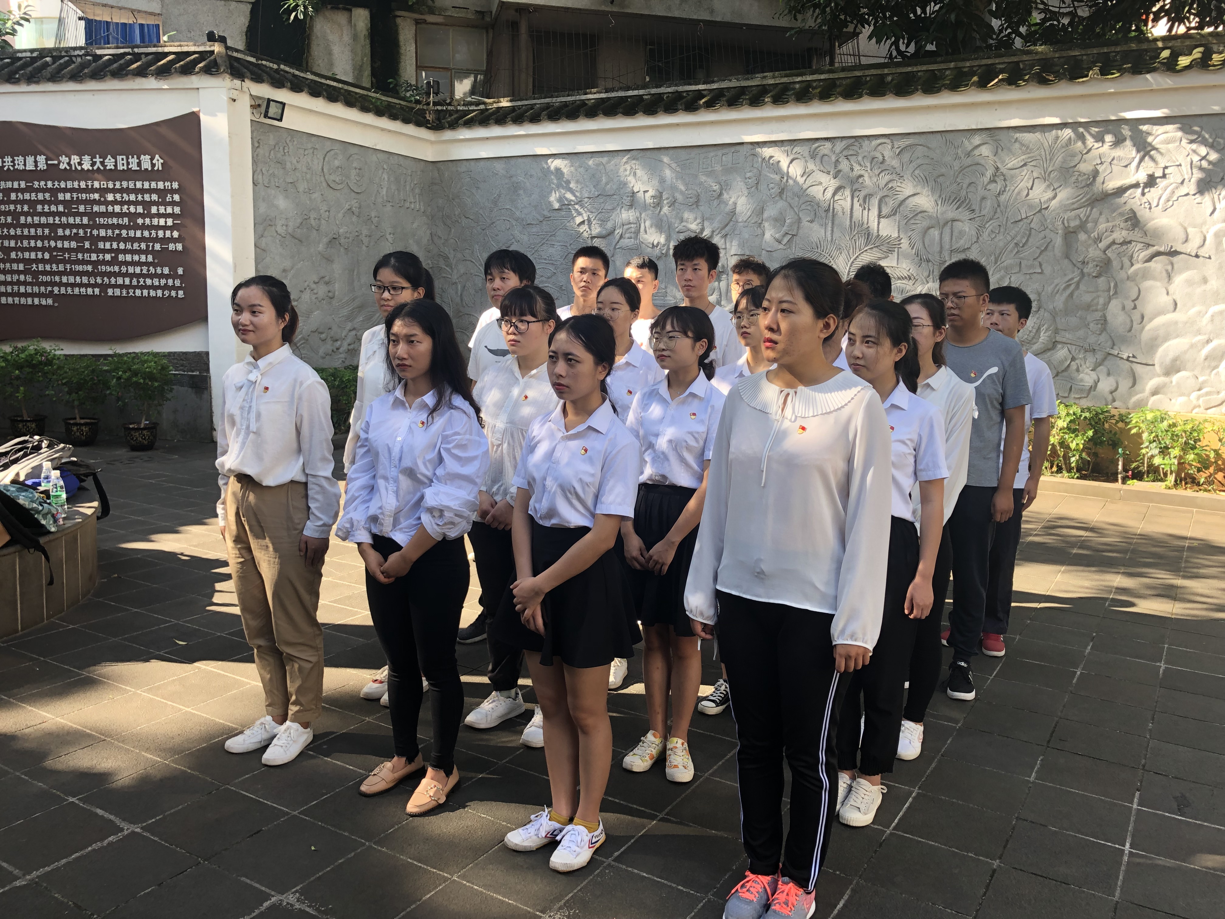 为重温琼崖革命史,感受先烈革命情怀,加强党员们对琼崖人民的革命历程的认识,6月18日上午,学院新发展的预备党员在中共琼崖第一次代表大会旧址开展入党宣誓活动。在分管学院学生工作的副处级辅导员周郭军老师和党务工作负责人王曦老师的带领下,全体成员集体参观了一大会址。