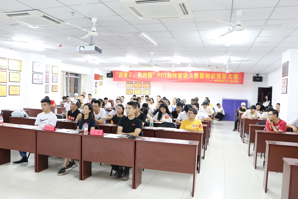 为让学生深入挖掘新中国成立70年来,特别是党的十八大以来的辉煌历程、伟大成就和宝贵经验,引导广大“工科生”坚定理想信念,扛起国家科技强国战略青年学生这一代人的使命担当, 9月28日晚,学院“厉害了,我的国”PPT制作宣讲大赛暨知识竞答大赛在研发中心楼710隆重举行,分管学生工作的副处级辅导员周郭军,团委负责人王曦出席。本科生材料党支部、高分子党支部和大一、大二全体团支部组队参赛,全体本科学生党员和各团支部代表参加。