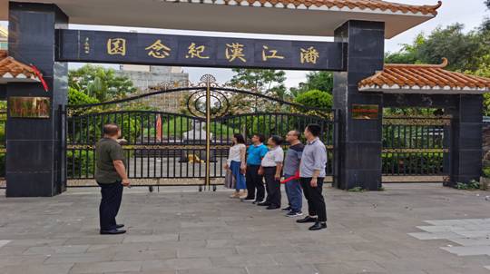 活动以学习战争年代琼岛英雄潘江汉率领琼纵第五总队打垮了国民党军156师,歼敌近一个团,创造了琼崖纵队作战史上溃敌一个师的战例和渡海先锋营冒着敌机、敌舰和地面密集火力封锁,首渡琼州海峡,强行登陆白马井超头海滩的故事拉开支部此次“红色教育”主题党日活动的序幕。随后,在廖建和院长、胡先文副书记的带领下,实地来到潘江汉纪念园开展缅怀革命先烈,传承革命精神活动。