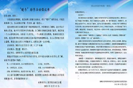 2021年12月22日上午9:00,材料学院行政党支部在研发楼一楼大厅,对全院老师们发起了“暖冬”助学活动。