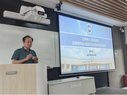 学院党委书记胡先文发表重要讲话,强调组织导师培训的重要性和意义,指出国家研究生教育发展的新形势和年轻导师的困惑,胡先文书记从科研问题、导师问题、师德师风问题等方面分享了案例,鼓励年轻导师们在科研工作、研究生培养过程中不断总结提升,呼吁导师与时俱进,根据时代发展改进研究生培养理念、方法和举措。
